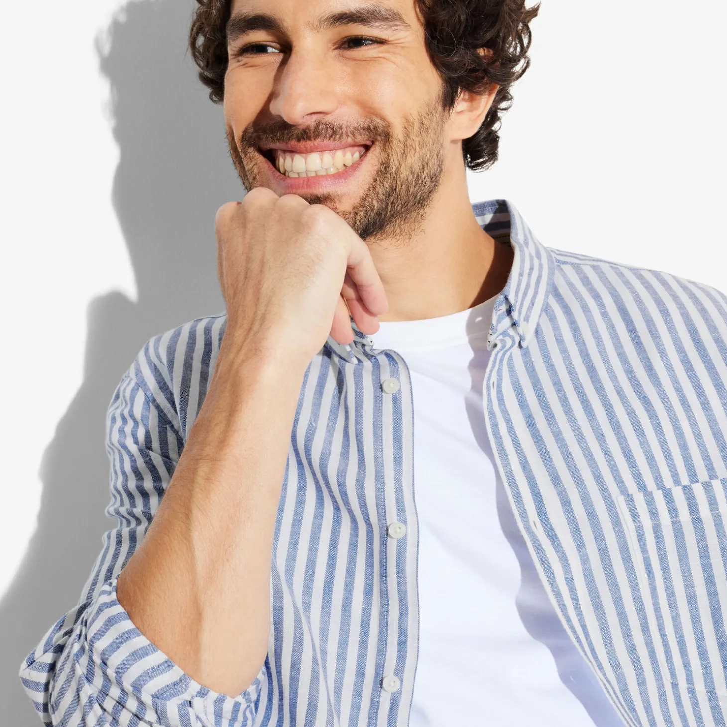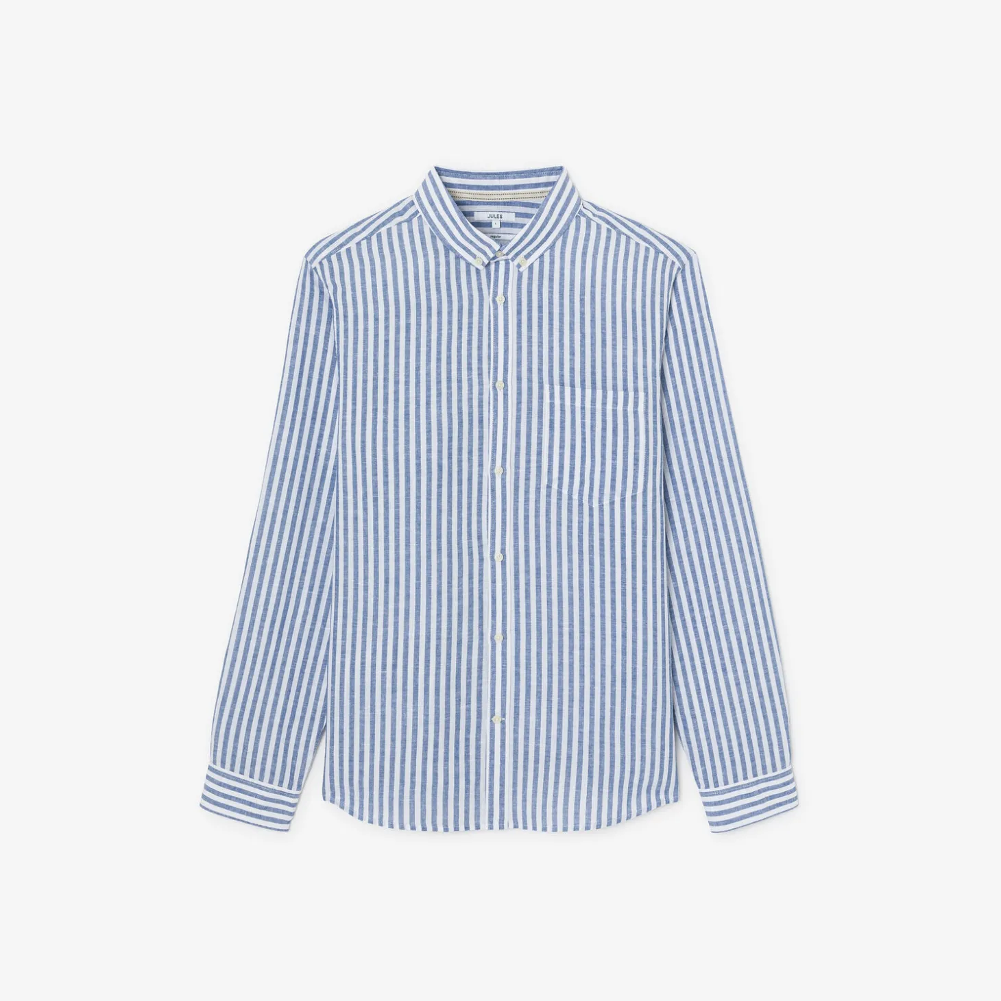 Dit gestreept, thermoregulerend hemd in katoen en linnen voelt licht en zacht aan.