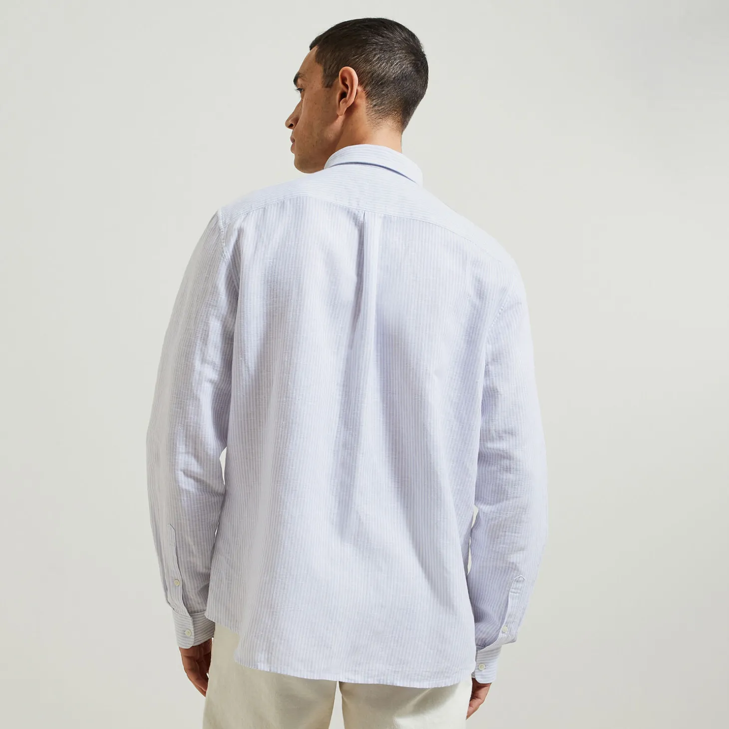 Linnen is een natuurlijke stof, omdat vlasteelt geen chemicaliën en 65% minder water vereist ten opzichte van katoenteelt. Het heeft thermoregulerende eigenschappen en is bovendien zeer sterk.Het model meet 1m86 en draagt maat L.