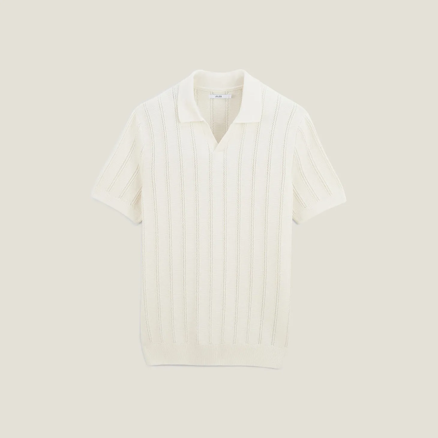 De polo met korte mouwen en polokraag is een goed compromis tussen een casual en een classy stijl! Zijn gaatjesmotief geeft een vleugje fantasie aan je outfit.