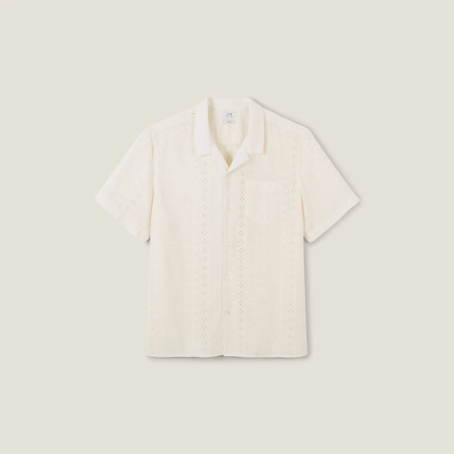 Dit hemdje met ajourborduursel is tegelijkertijd zacht, soepel en comfortabel, voor een relaxte look.