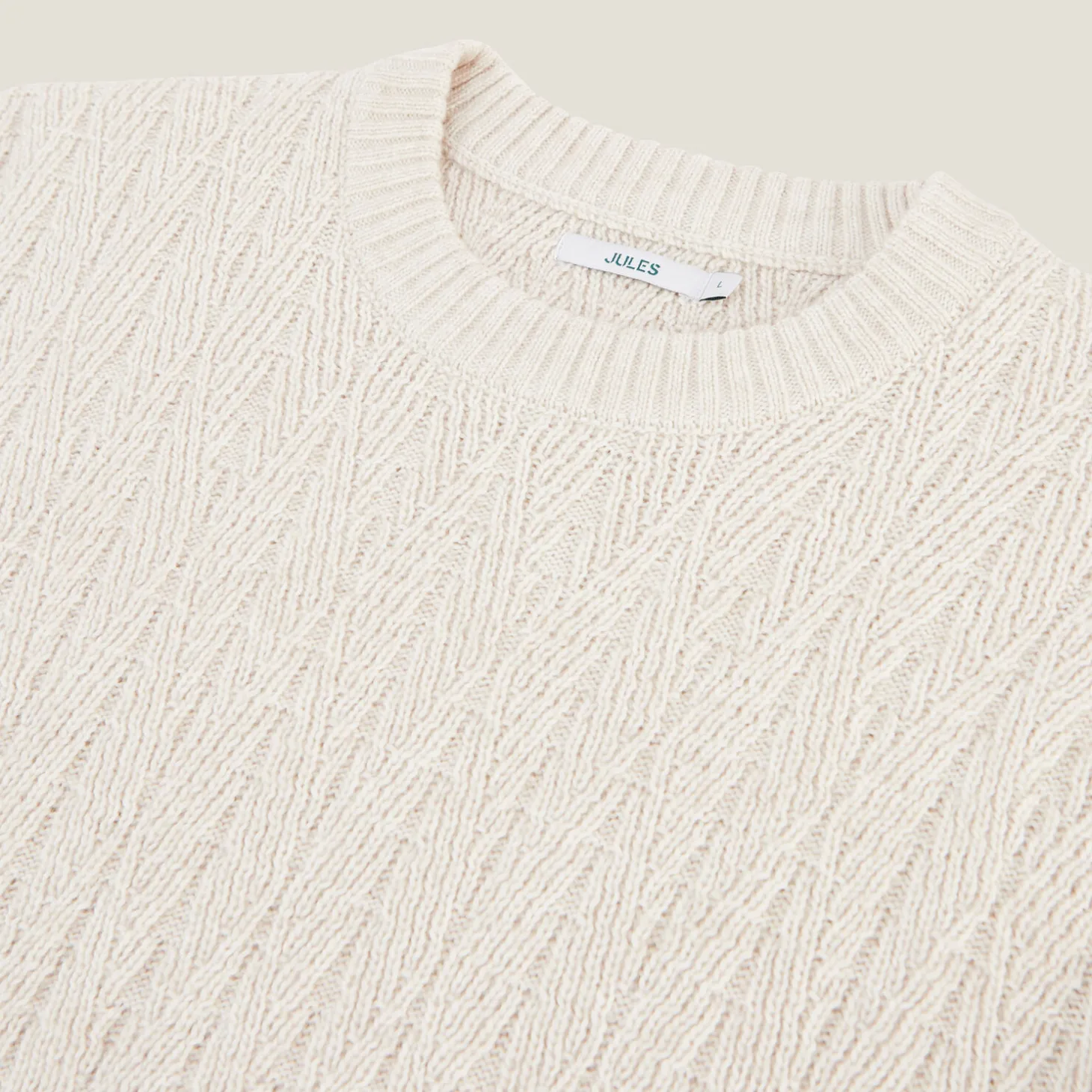 Deze kabeltrui met ronde hals van fantasiewol is een must-have in een herengarderobe. Zijn regular fit en details geven hem een moderne look die overal bij past.