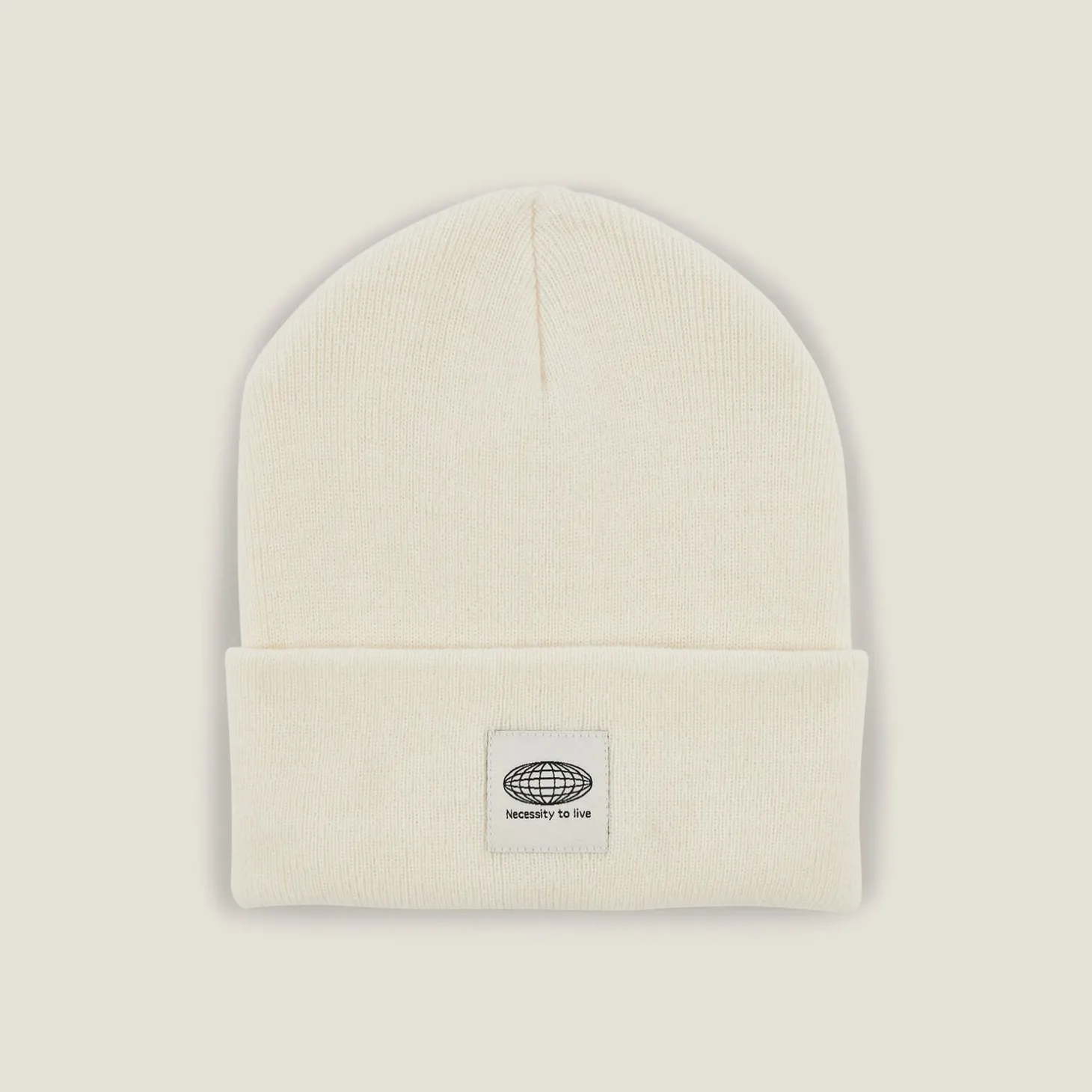 - Etiket “Necessity to live” vooraan opgenaaid